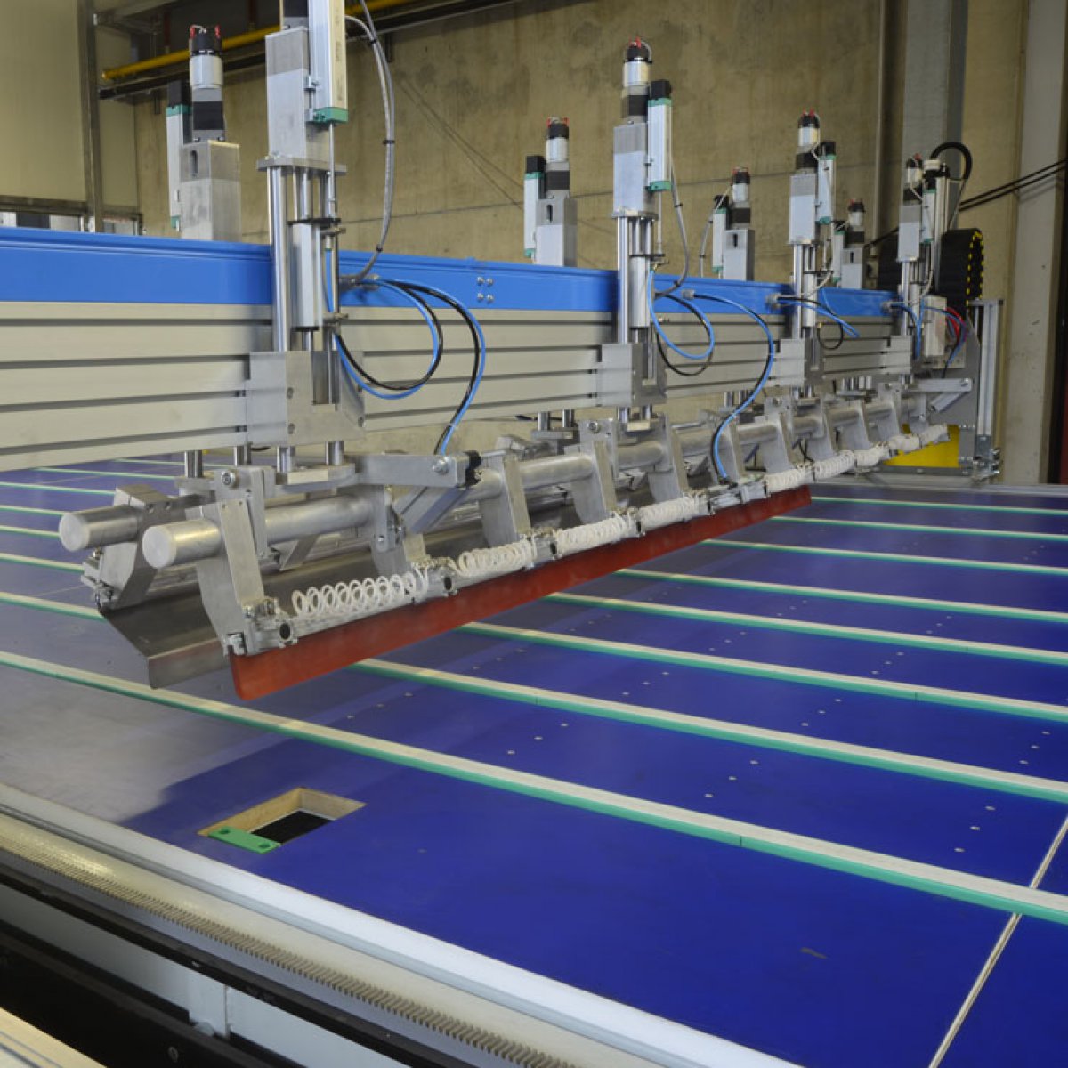 - Possibility of processing one or more glass sheets on the same conveyor belt.